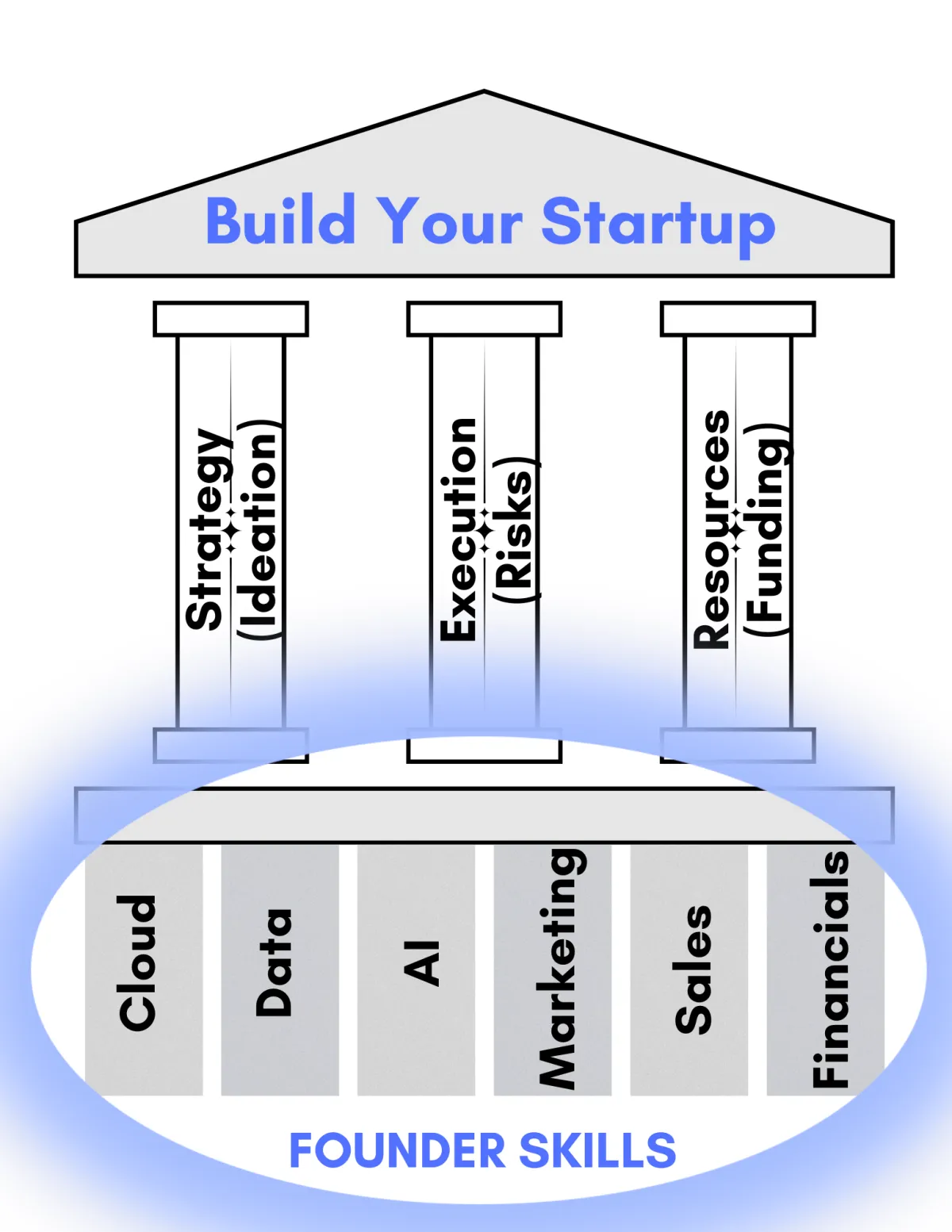 Each of these skills are designed with your success in mind. From all the technical know-how of cloud, data, AI to mastering marketing and sales to understanding your finances, I’ve thought through every skill and tool you’ll need to confidently build and scale your startup.